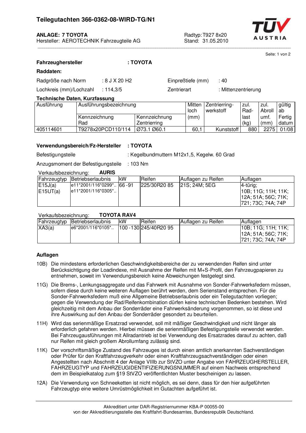teilegutachten 366-0362-08-wird-tg-n1 AEROTECHNIK T927 8x20