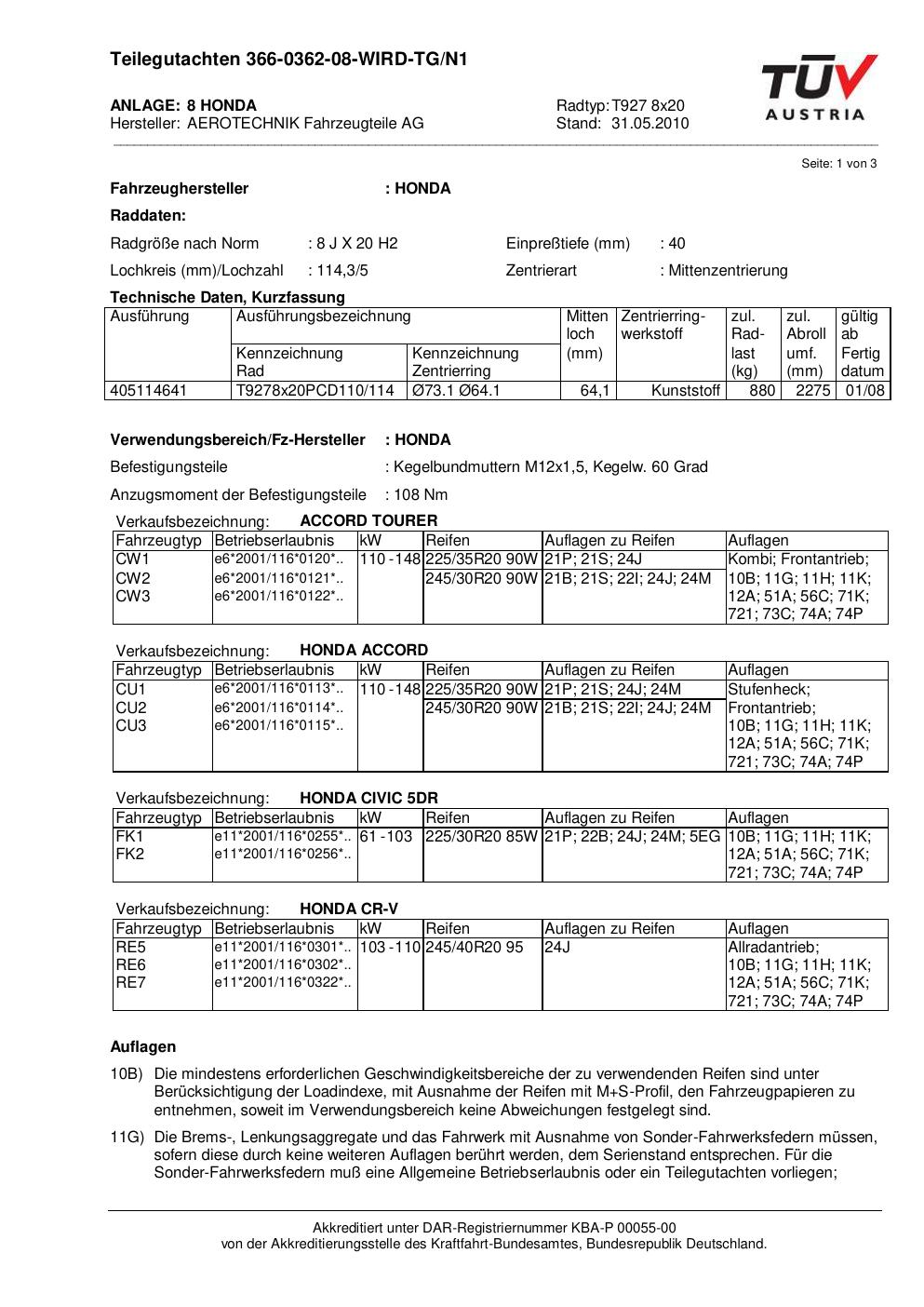 teilegutachten 366-0362-08-wird-tg-n1 AEROTECHNIK T927 8x20