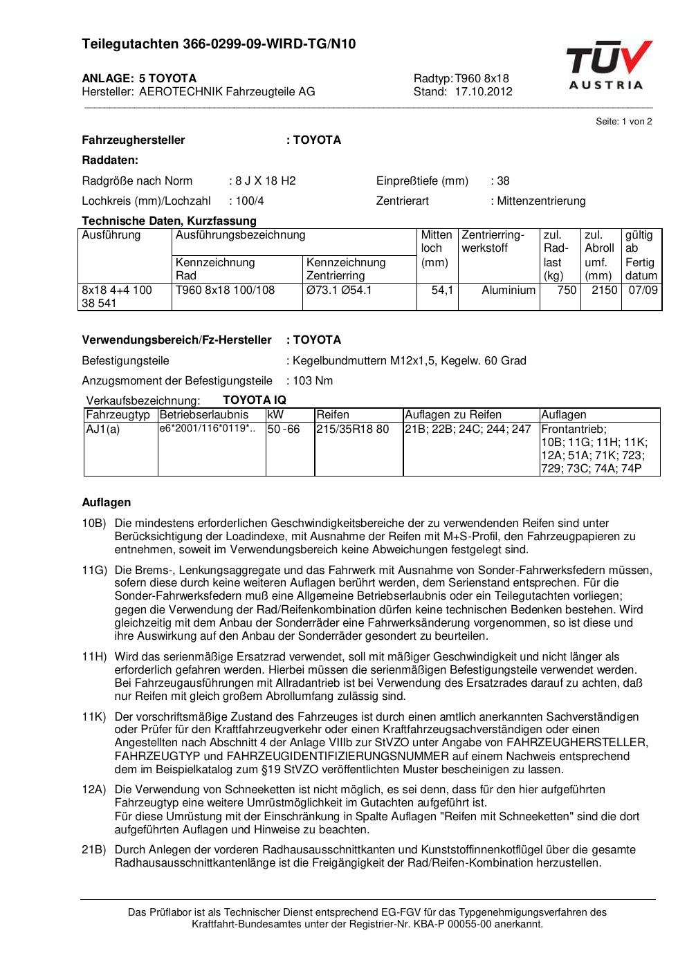 teilegutachten AEROTECHNIK T960 8x18