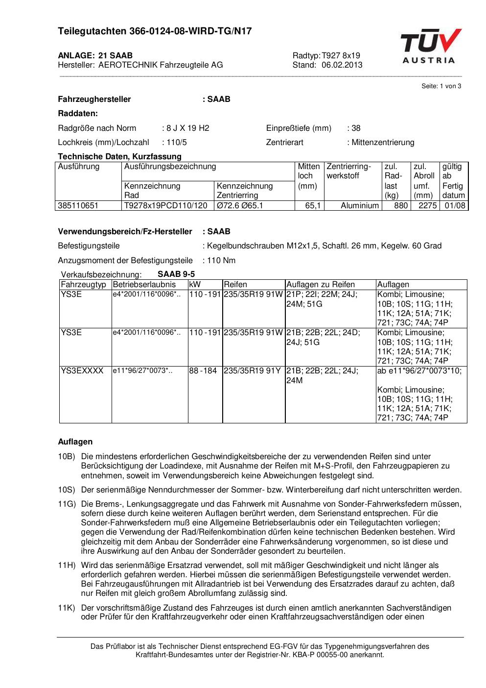 - Stimmt die KBA-Nummer auf der Felge mit diesem Dokument überein?