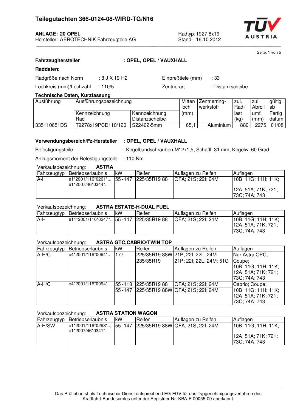 teilegutachten teilegutachten-366-0124-08-wird-tg-n16 AEROTECHNIK T927 8x19