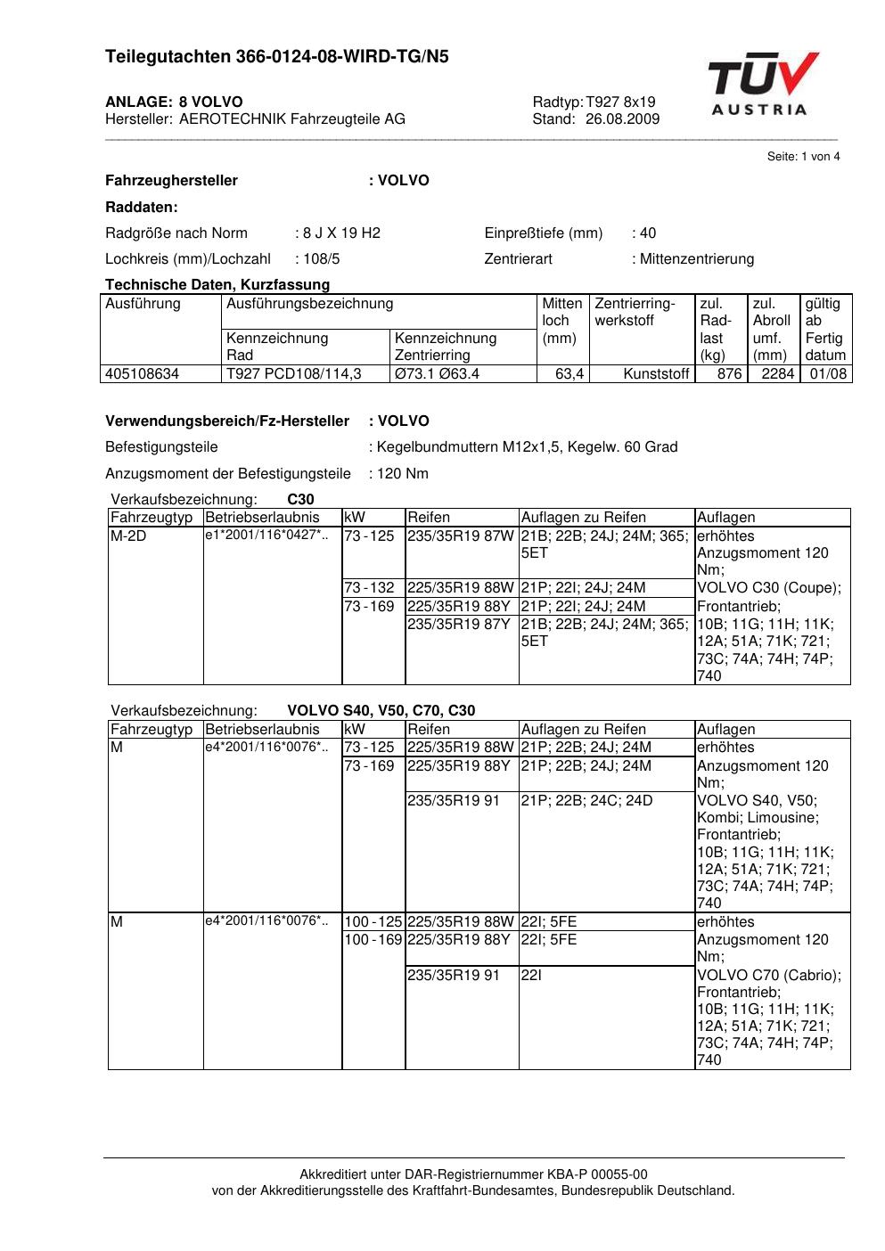 teilegutachten teilegutachten-366-0124-08-wird-tg-n5 AEROTECHNIK T927 8x19