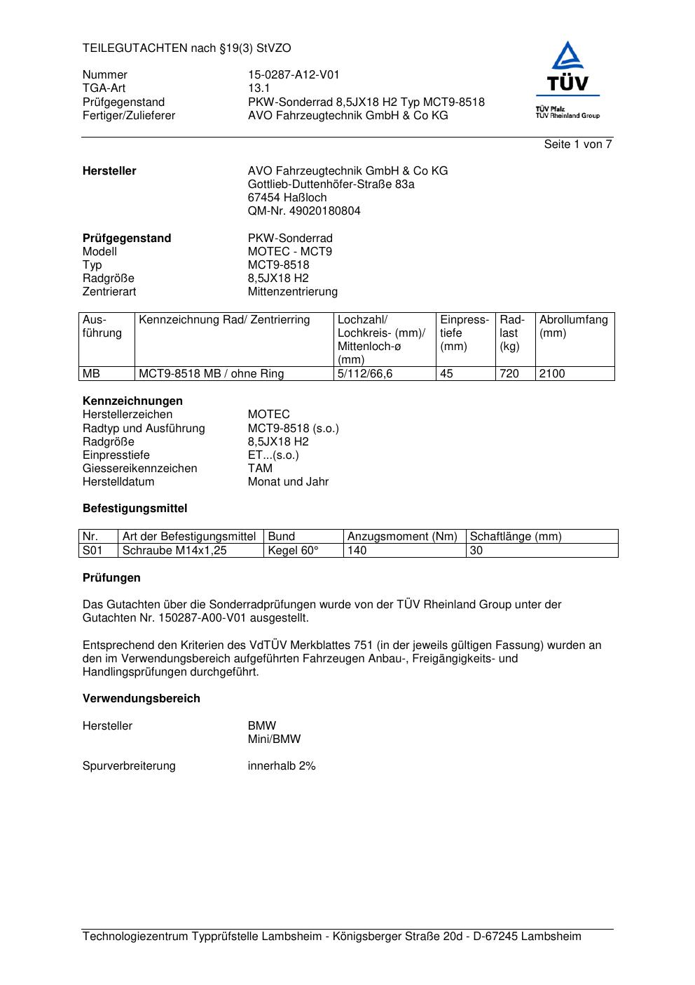 teilegutachten 15-0287-a12-v01 AVO MCT9-8518