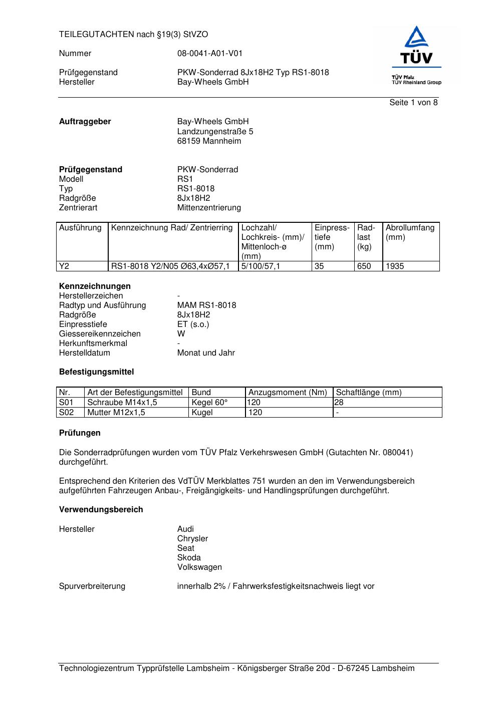 teilegutachten 08-0041-a01-v01 Bay-Wheels RS1-8018