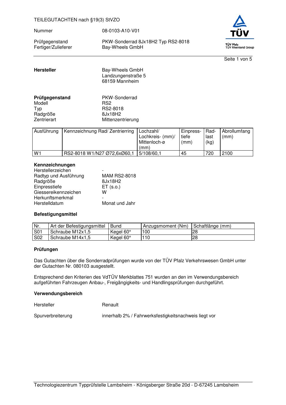 teilegutachten 08-0103-a10-v01 Bay-Wheels RS2-8018