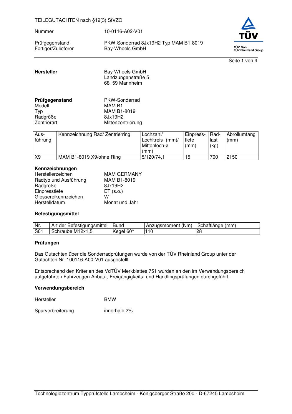teilegutachten 10-0116-a02-v01 Bay-Wheels MAM B1-8019