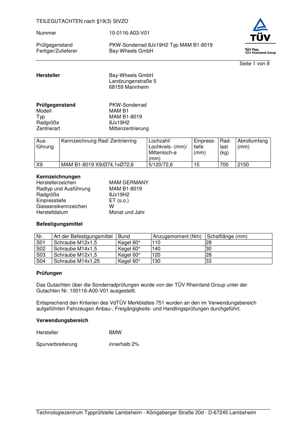 teilegutachten 10-0116-a03-v01 Bay-Wheels MAM B1-8019