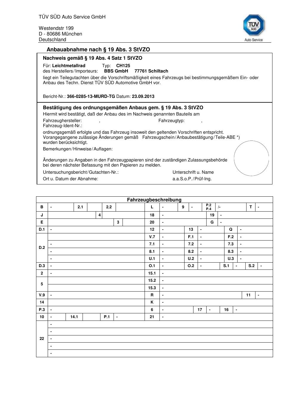 teilegutachten BBS CH125