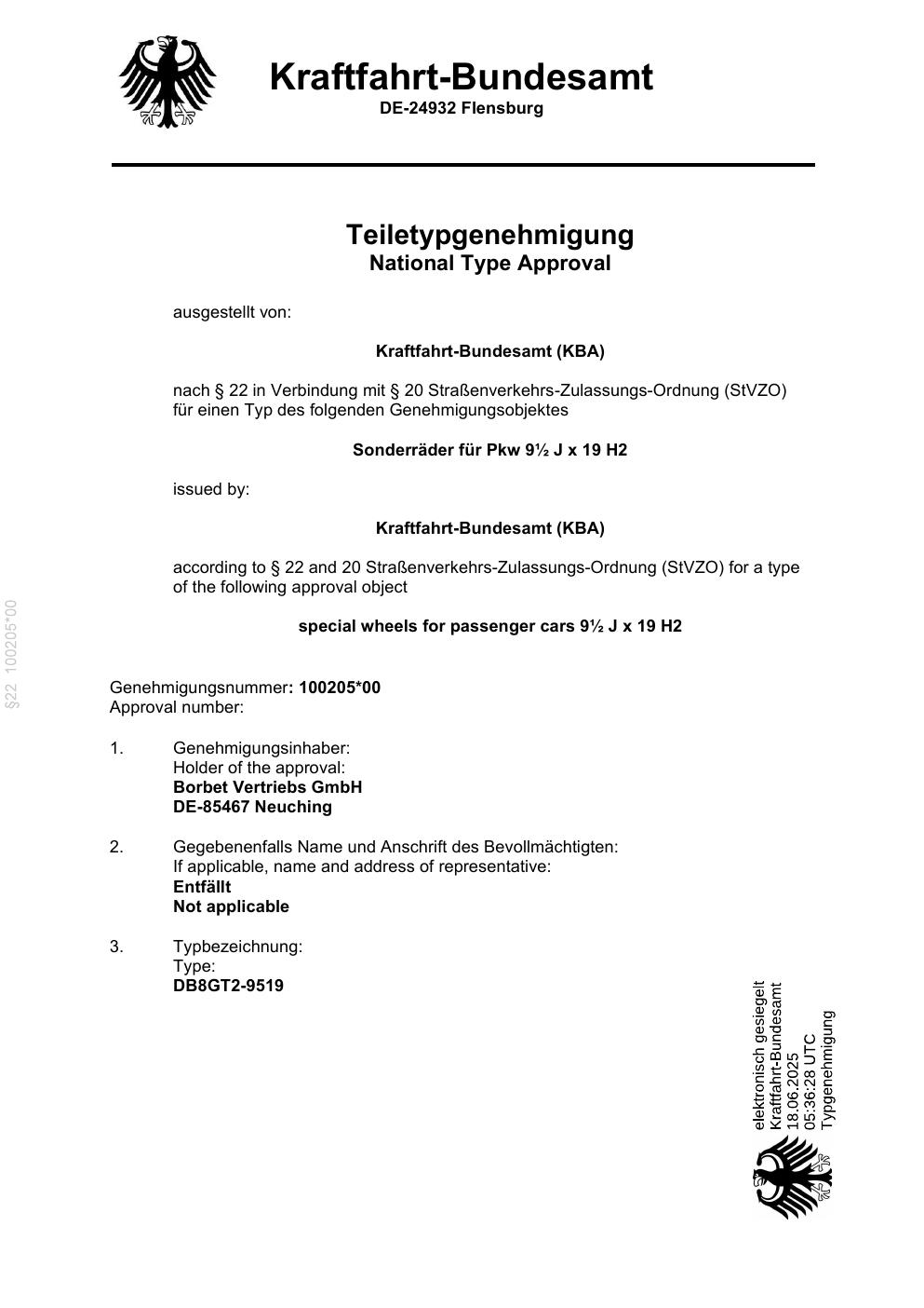 teilegutachten 100205 Borbet DB8GT2
