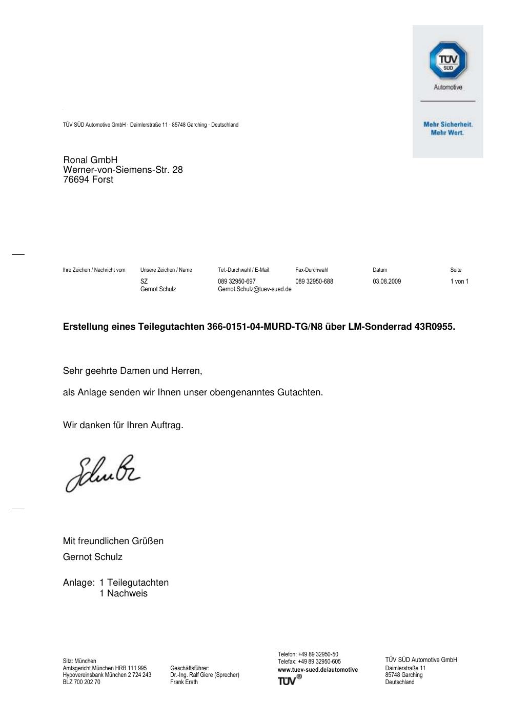 teilegutachten 366-0151-04-murd-tg-n8 Ronal 43R0955
