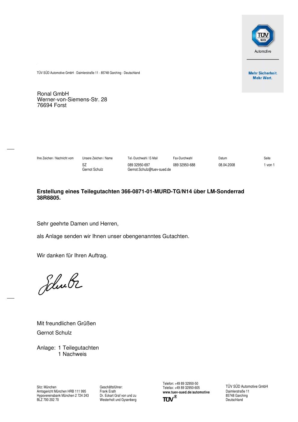 teilegutachten 366-0871-01-murd-tg-n14 Ronal 38R8805