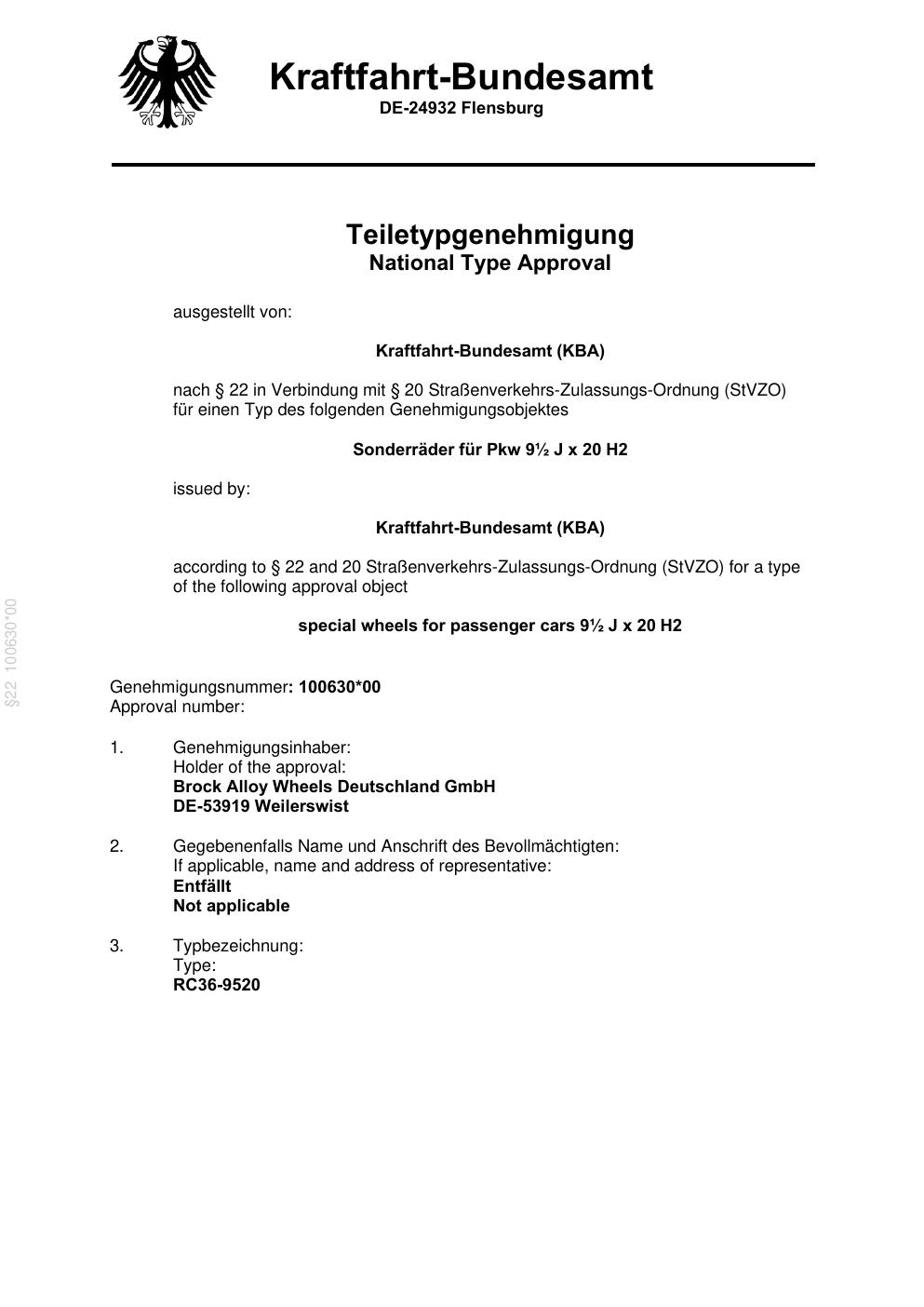teilegutachten 100630-00 Brock B42