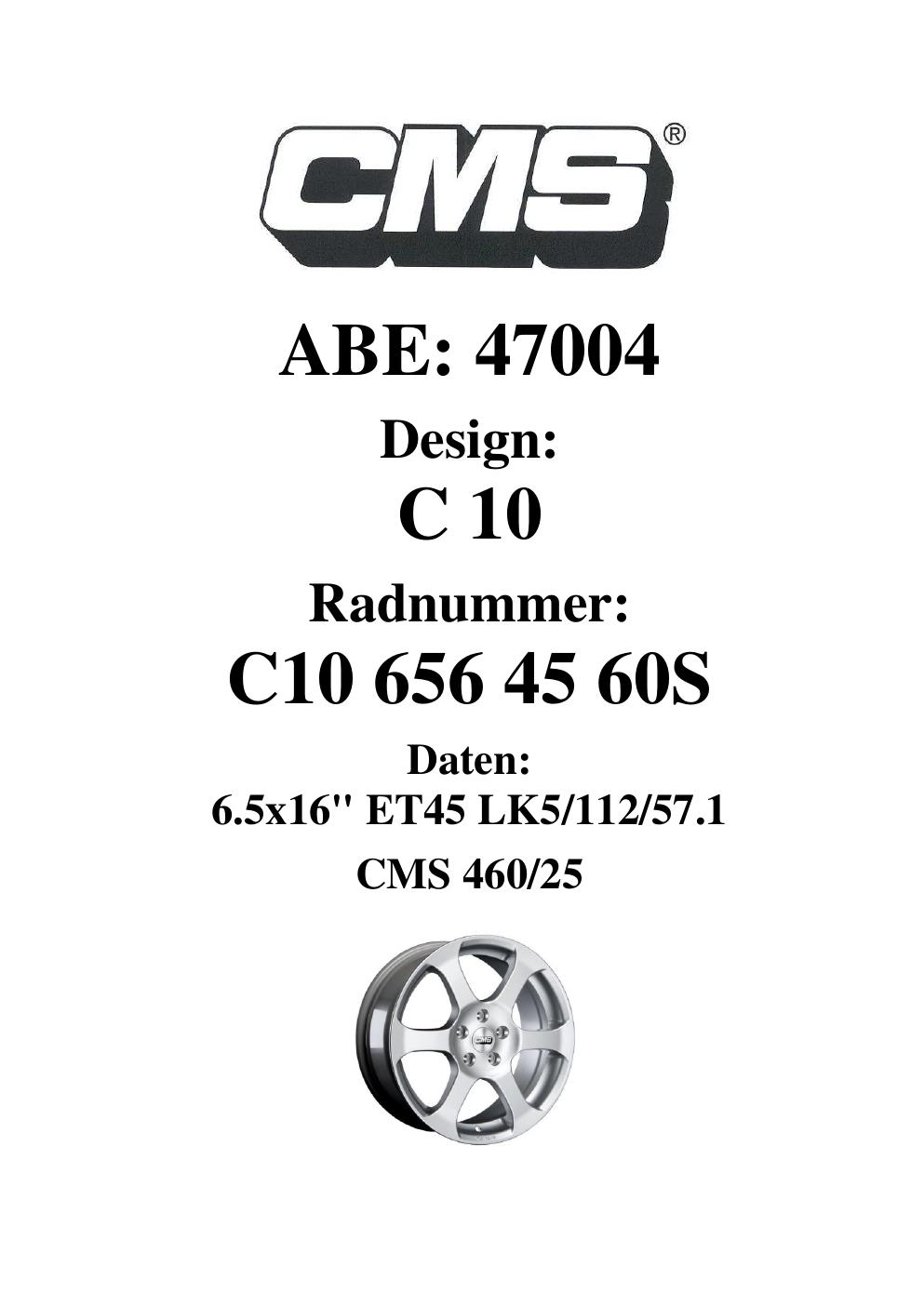 - CMS C10 – 6.5Jx16 ET0.0 (KBA 47004)