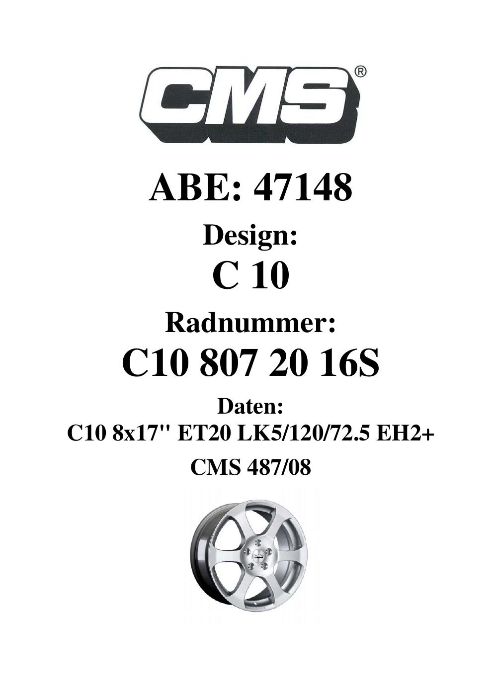 - CMS C10 – 8.0Jx17 ET0.0 (KBA 47148)
