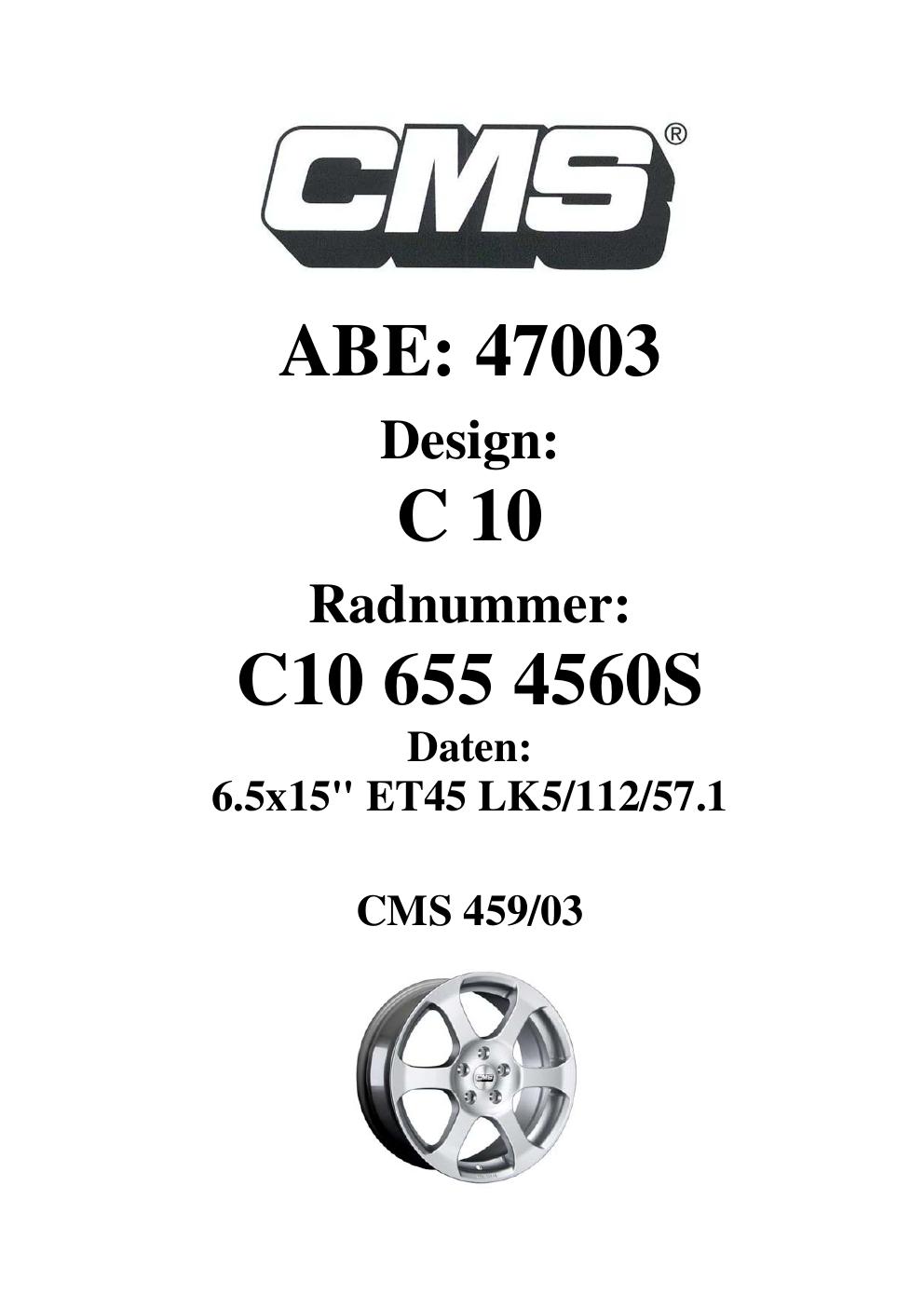 - CMS C10 – 6.5Jx15 ET0.0 (KBA 47003)