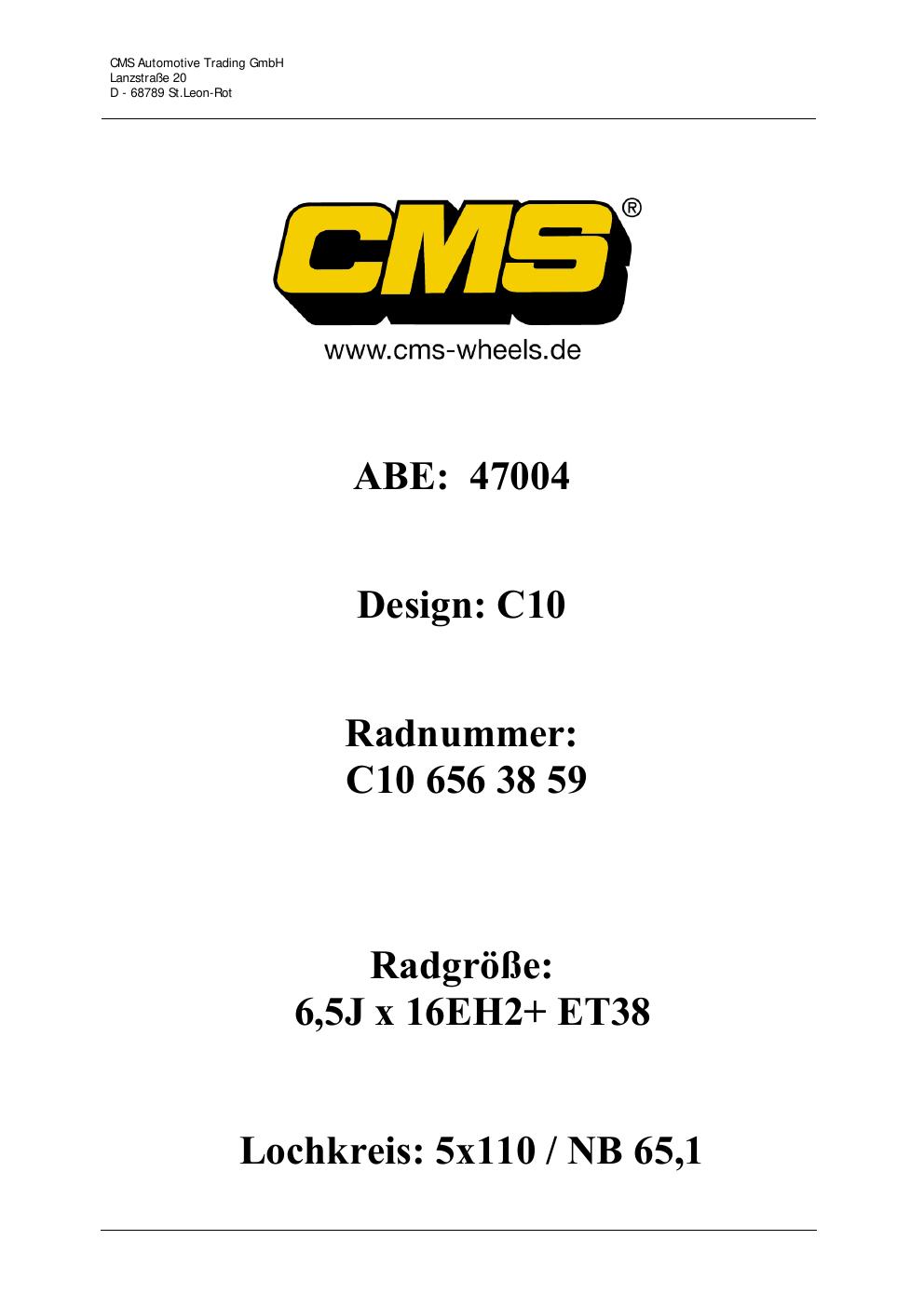 - CMS C10 – 6.5Jx16 ET0.0 (KBA 47004)