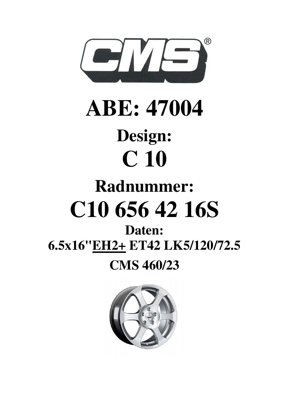 - CMS C10 – 6.5Jx16 ET0.0 (KBA 47004)