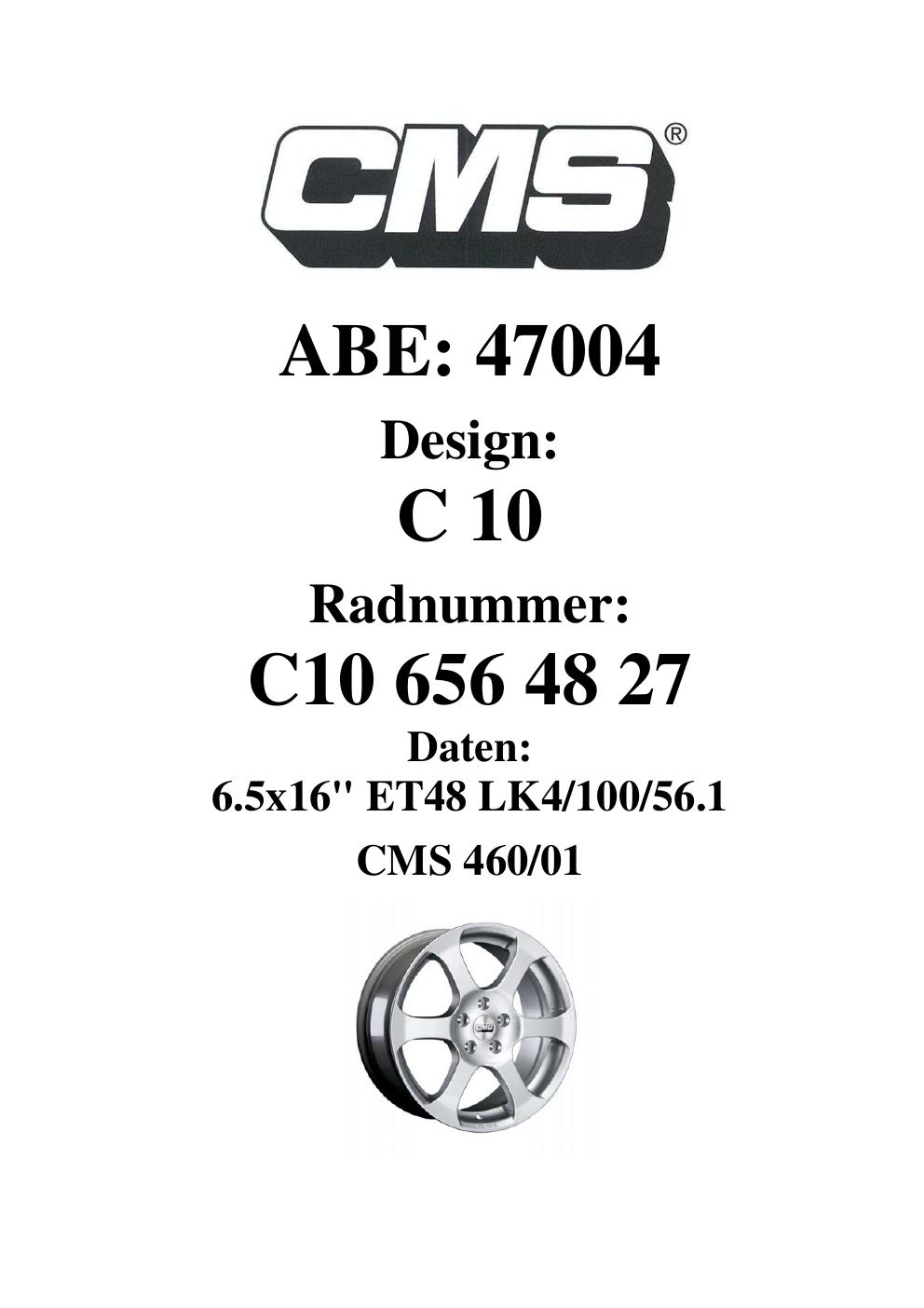 - CMS C10 – 6.5Jx16 ET0.0 (KBA 47004)