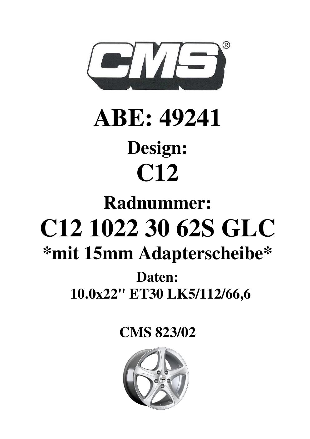 Dieses ABE gehört zur Felge CMS C12 in 10Jx22 ET0 mit KBA 49241. Die Seite ist dafür gedacht, dass du schnell prüfen kannst, ob KBA, Design und Größe zu deiner Felge passen und danach direkt das richtige PDF lädst.