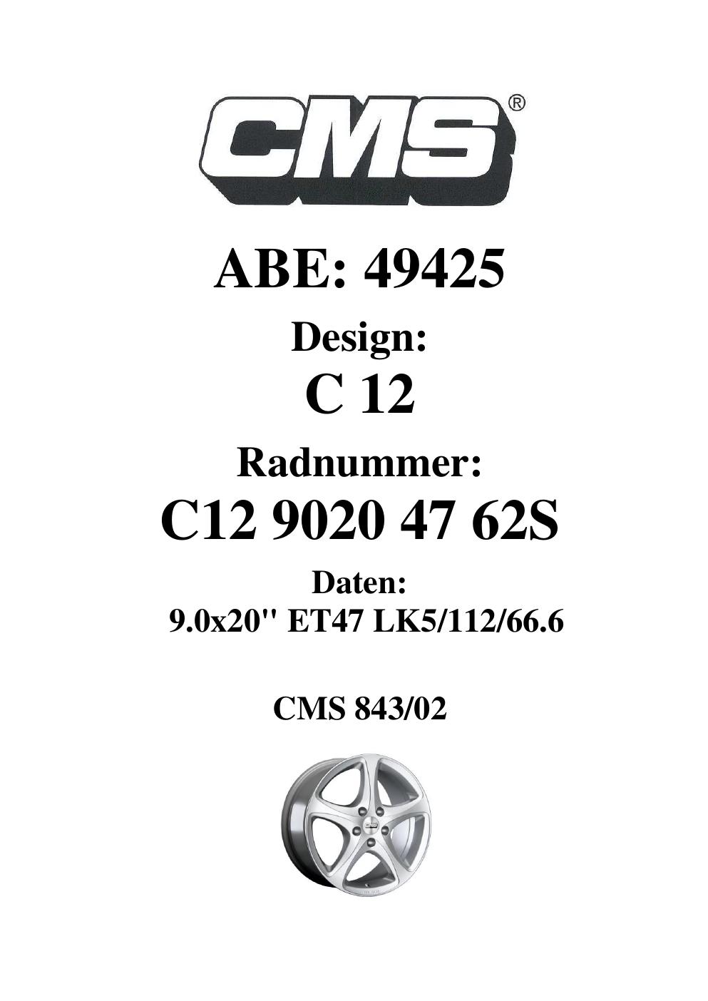 - CMS C12 – 9.0Jx20 ET0.0 (KBA 49425)