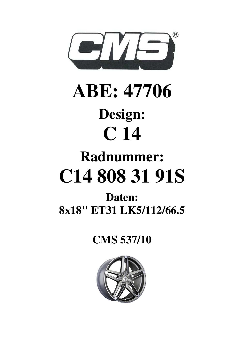 - CMS C14 – 8.0Jx18 ET0.0 (KBA 47706)
