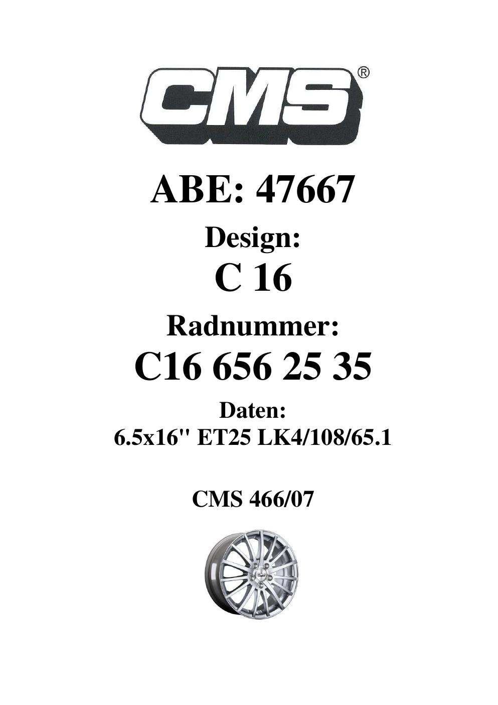 - CMS C16 – 6.5Jx16 ET0.0 (KBA 47667)