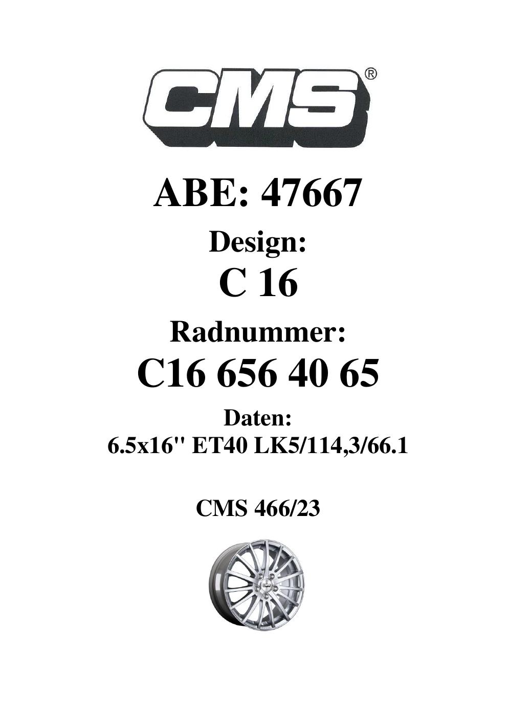 - CMS C16 – 6.5Jx16 ET0.0 (KBA 47667)