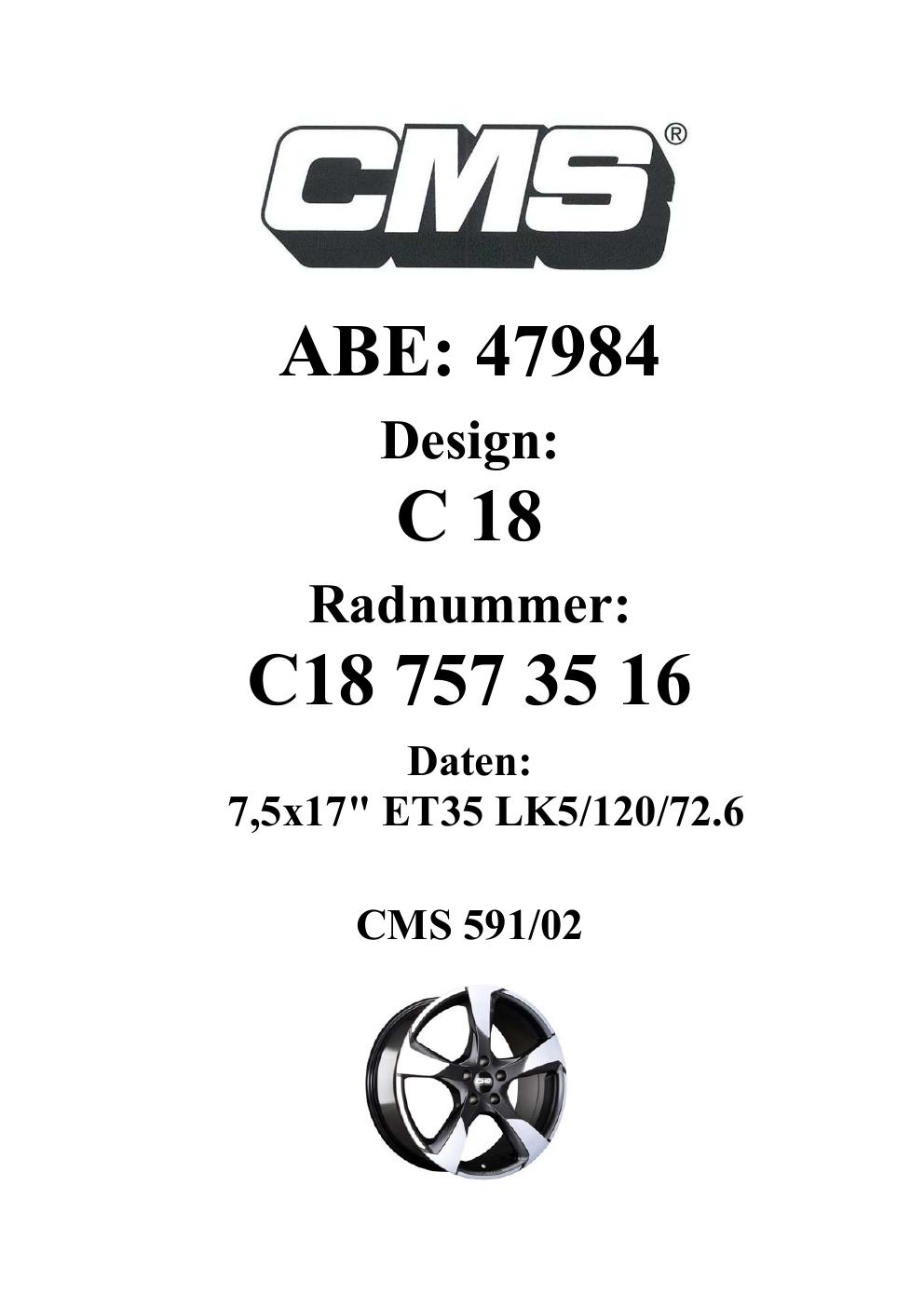 - CMS C18 – 7.5Jx17 ET0.0 (KBA 47984)
