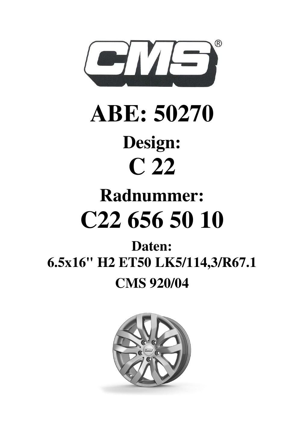 - CMS C22 – 6.5Jx16 ET0.0 (KBA 50270)