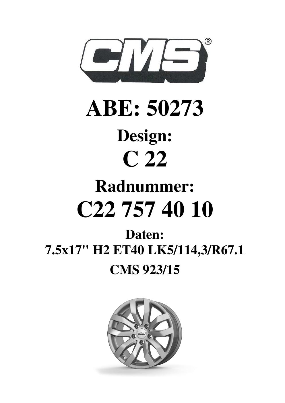 - CMS C22 – 7.5Jx17 ET0.0 (KBA 50273)