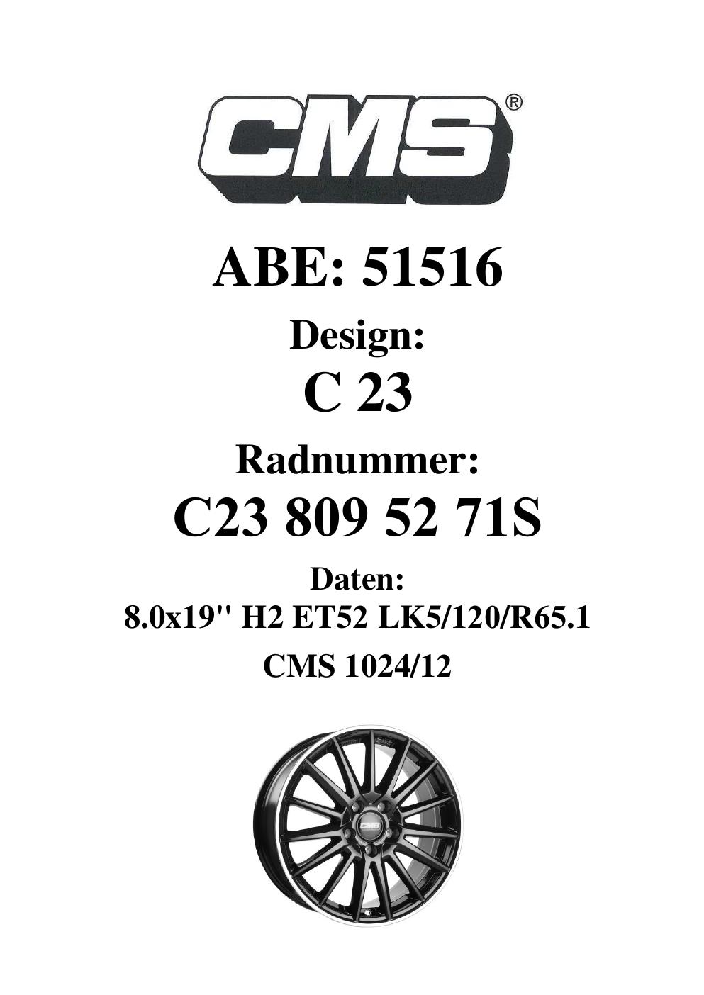 - CMS C23 – 8.0Jx19 ET0.0 (KBA 51516)