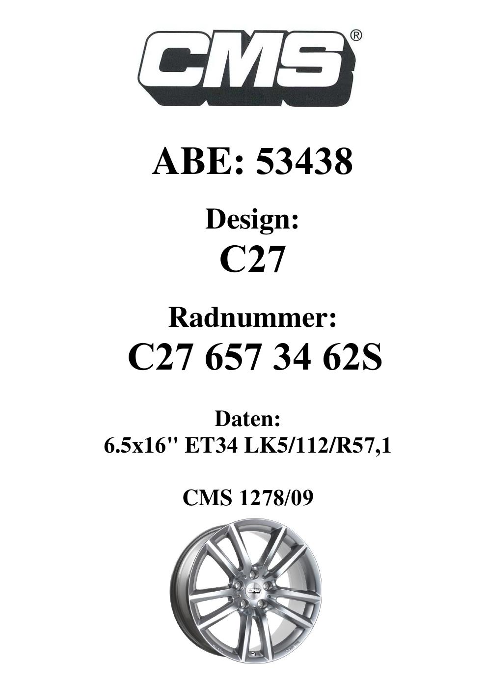 - CMS C27 – 6.5Jx16 ET0.0 (KBA 53438)