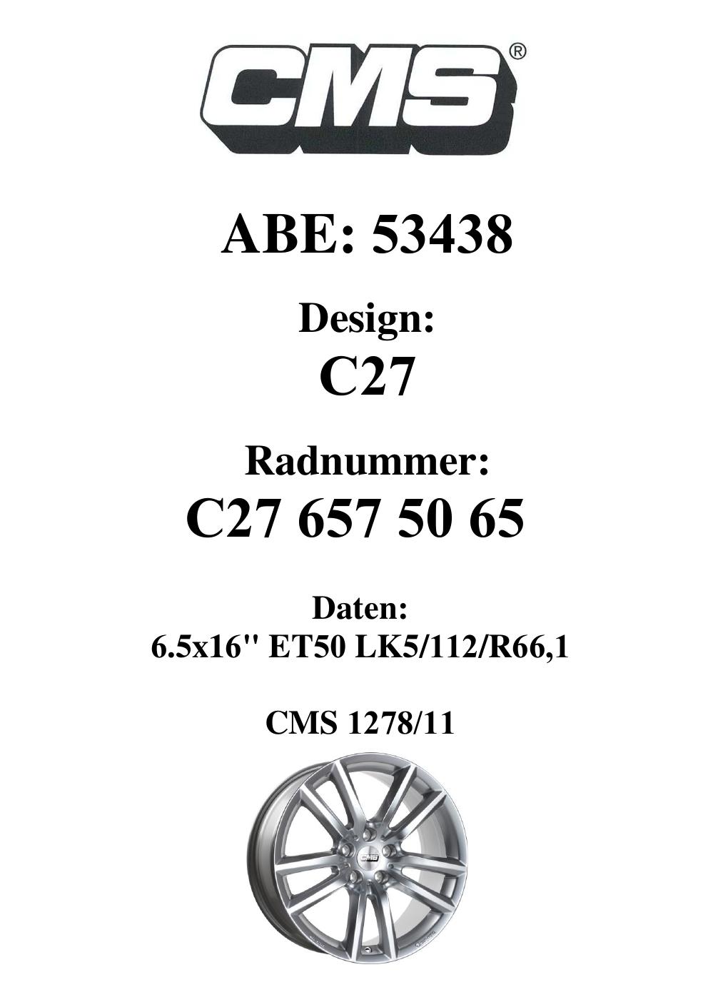 - CMS C27 – 6.5Jx16 ET0.0 (KBA 53438)