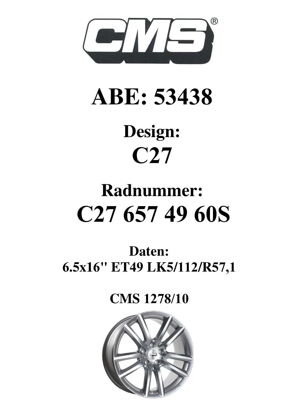 - CMS C27 – 6.5Jx16 ET0.0 (KBA 53438)