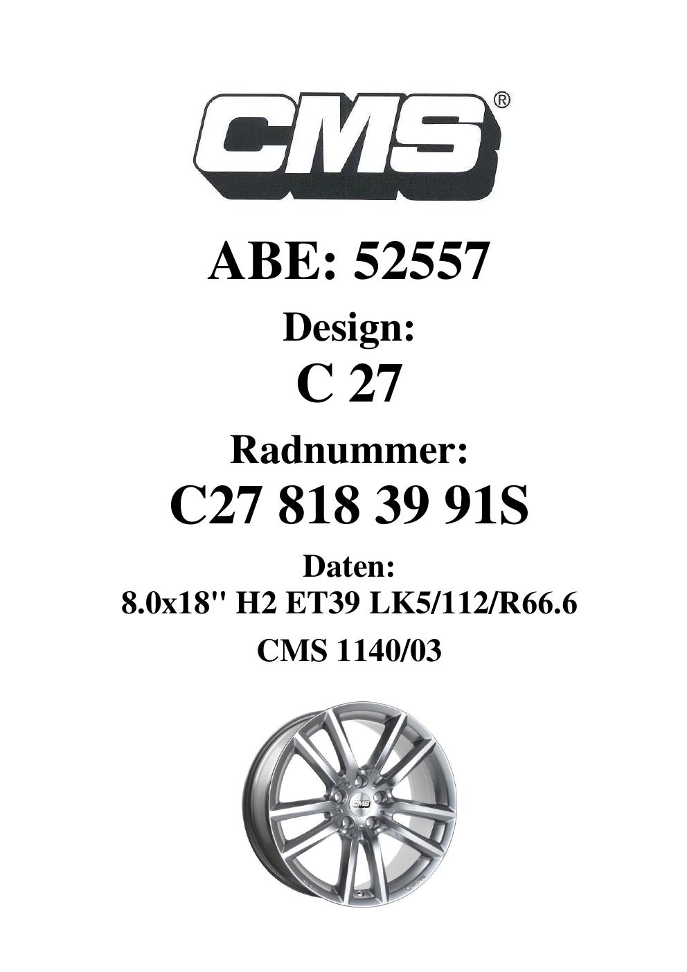 - CMS C27 – 8.0Jx18 ET0.0 (KBA 52557)