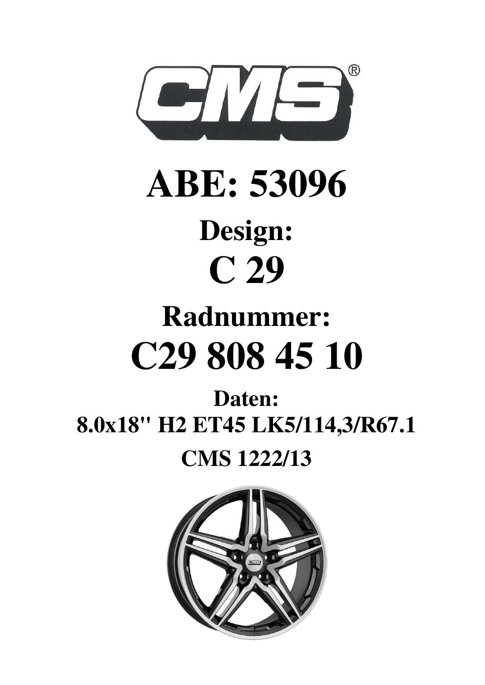 - CMS C29 – 8.0Jx18 ET0.0 (KBA 53096)
