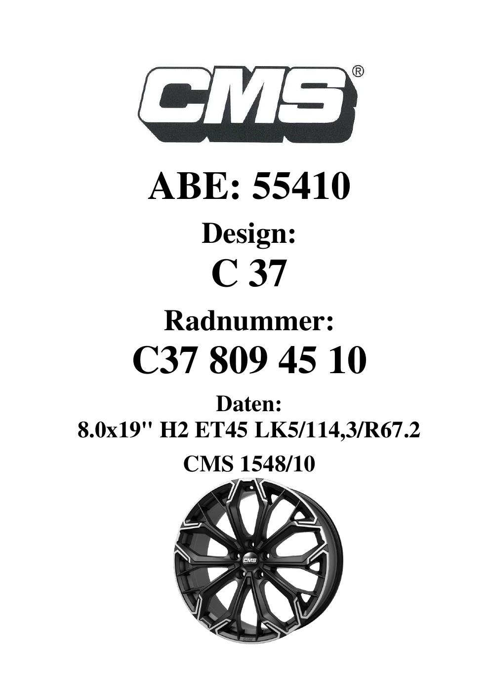 - CMS C37 – 8.0Jx19 ET0.0 (KBA 55410)