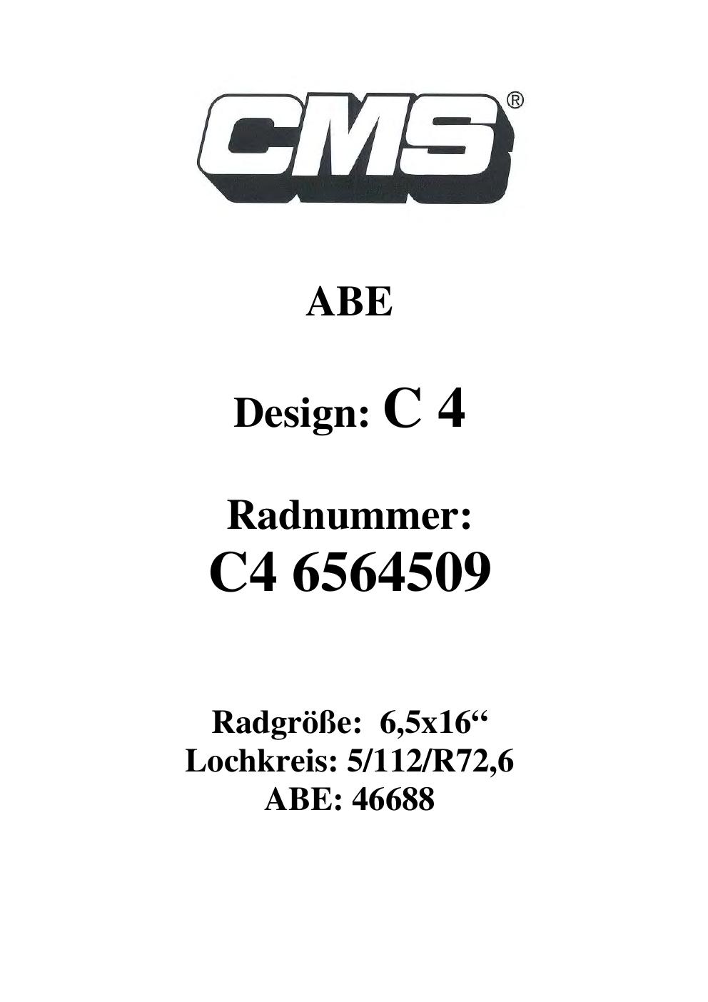- CMS C4 – 6.5Jx16 ET0.0 (KBA 46688)