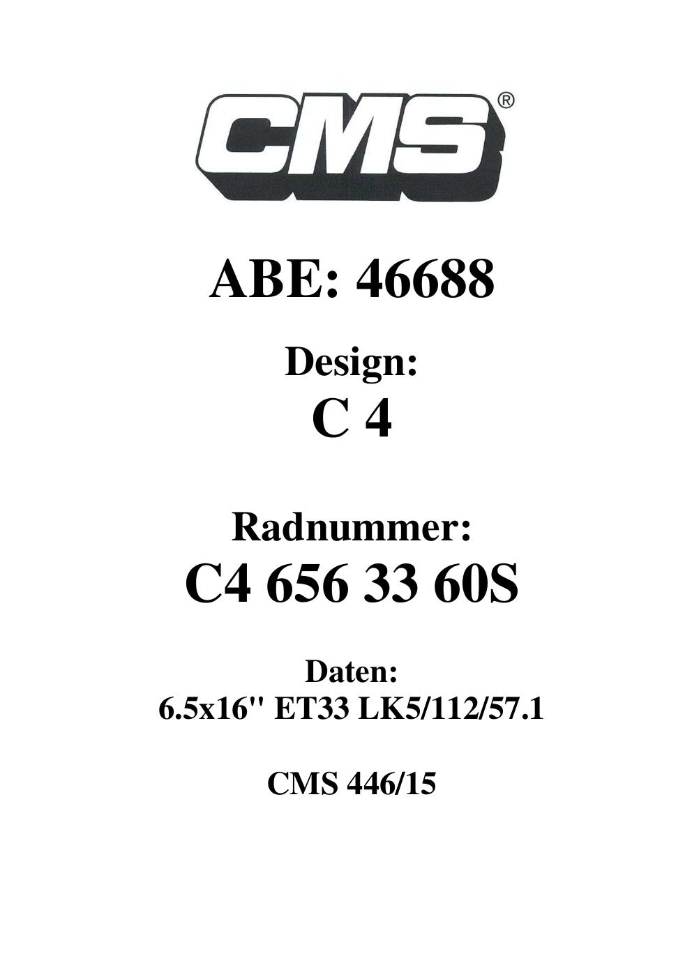 - CMS C4 – 6.5Jx16 ET0.0 (KBA 46688)