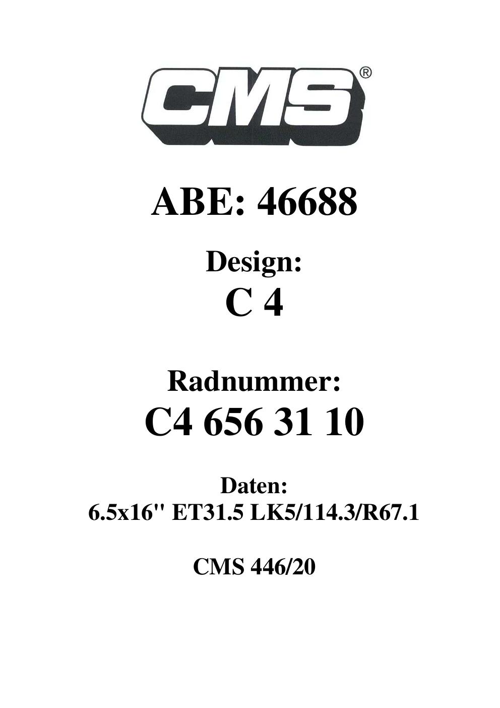 - CMS C4 – 6.5Jx16 ET0.0 (KBA 46688)