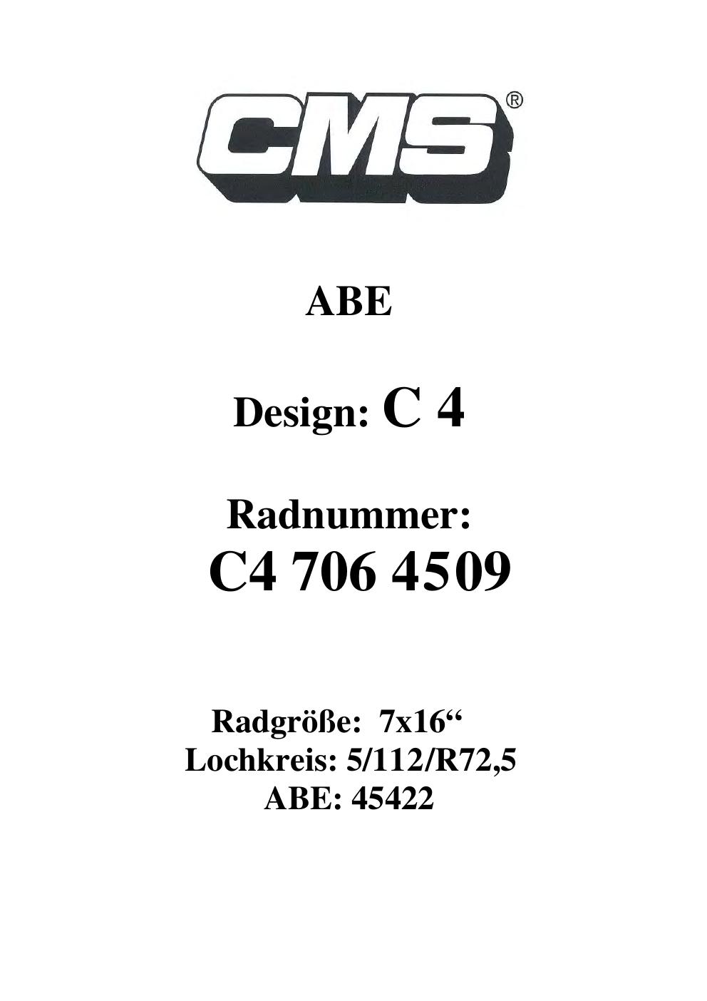 - CMS C4 – 7.0Jx16 ET0.0 (KBA 45422)