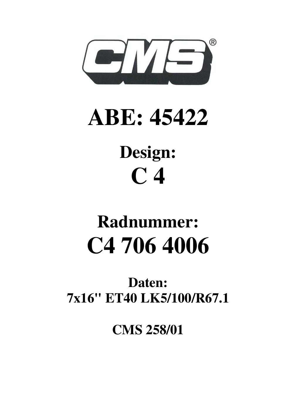 - CMS C4 – 7.0Jx16 ET0.0 (KBA 45422)