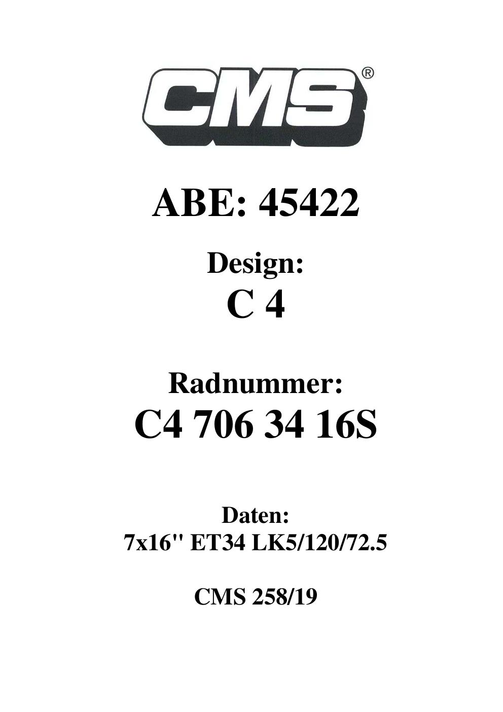 - CMS C4 – 7.0Jx16 ET0.0 (KBA 45422)