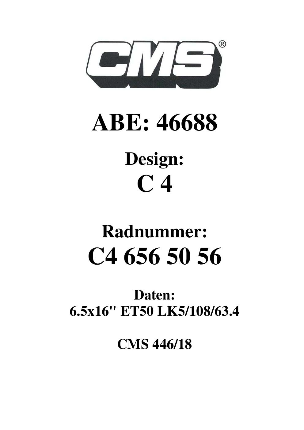 - CMS C4 – 6.5Jx16 ET0.0 (KBA 46688)