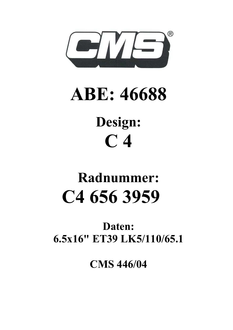 - CMS C4 – 6.5Jx16 ET0.0 (KBA 46688)