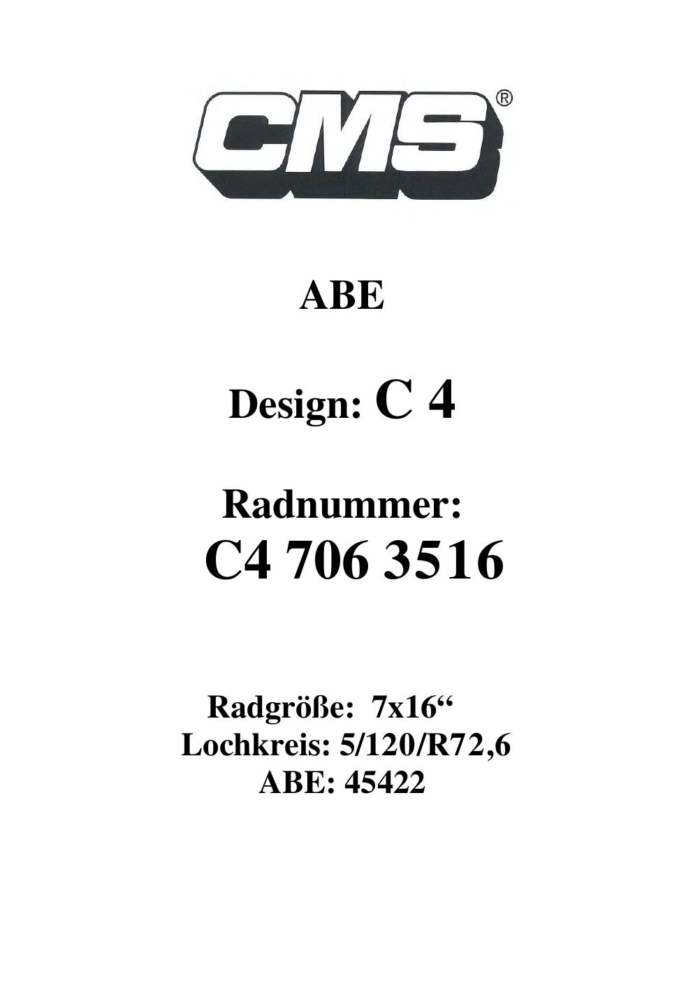 - CMS C4 – 7.0Jx16 ET0.0 (KBA 45422)