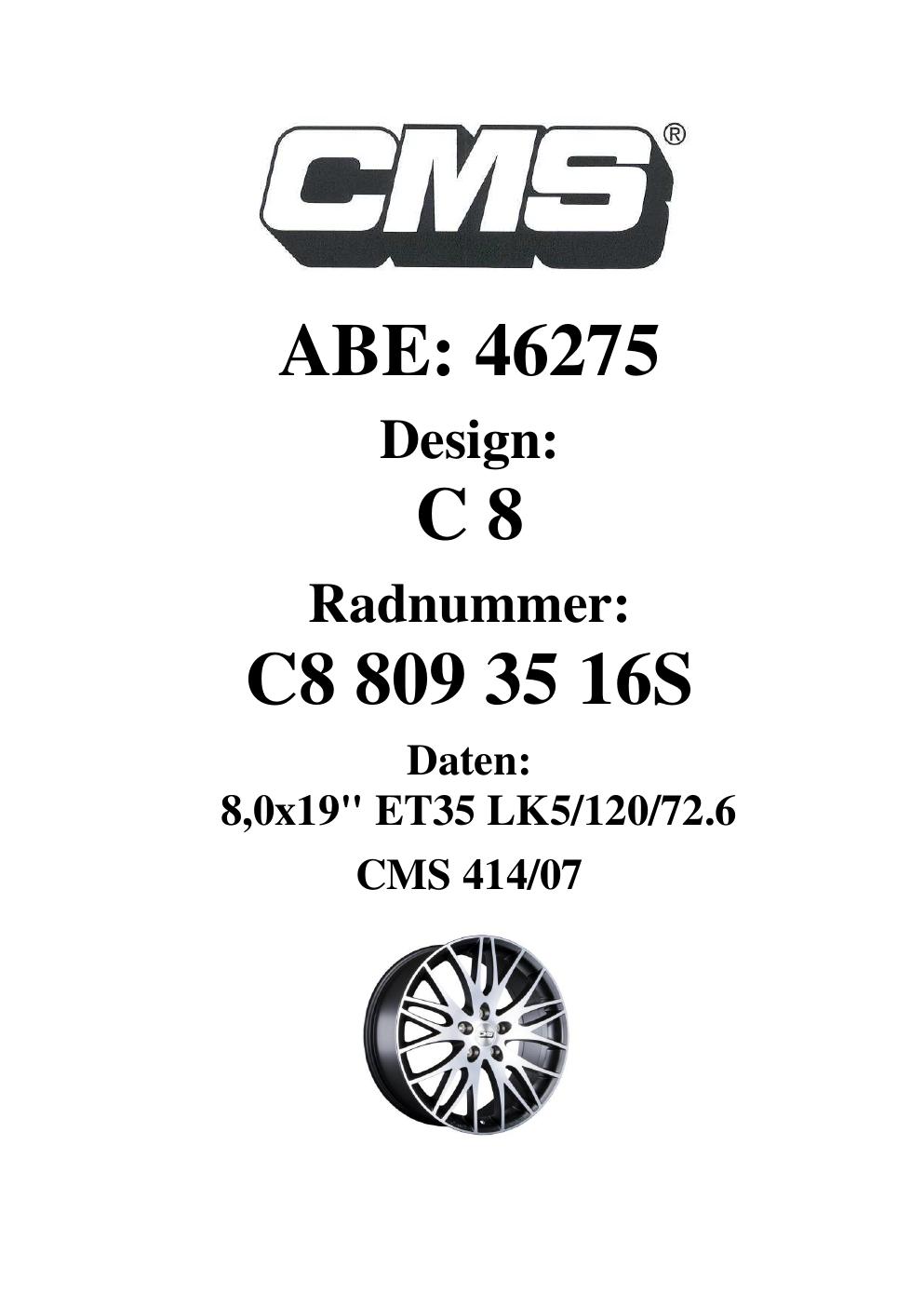 - CMS C8 – 8.0Jx19 ET0.0 (KBA 46275)