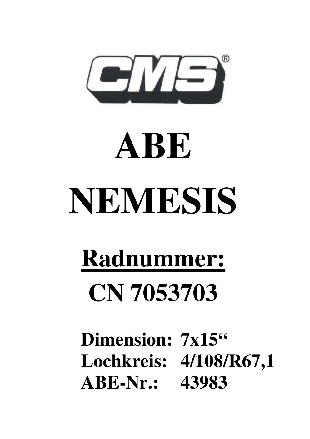 Dieses Gutachten (ABE) bezieht sich auf die Alufelge CMS UNKNOWN in der Ausführung ET 0, Mittenloch 0 mm (KBA 43983). Im PDF findest du typischerweise zulässige Reifengrößen, Auflagen/Anbauhinweise und – je nach Dokument – Hinweise zur Eintragung.