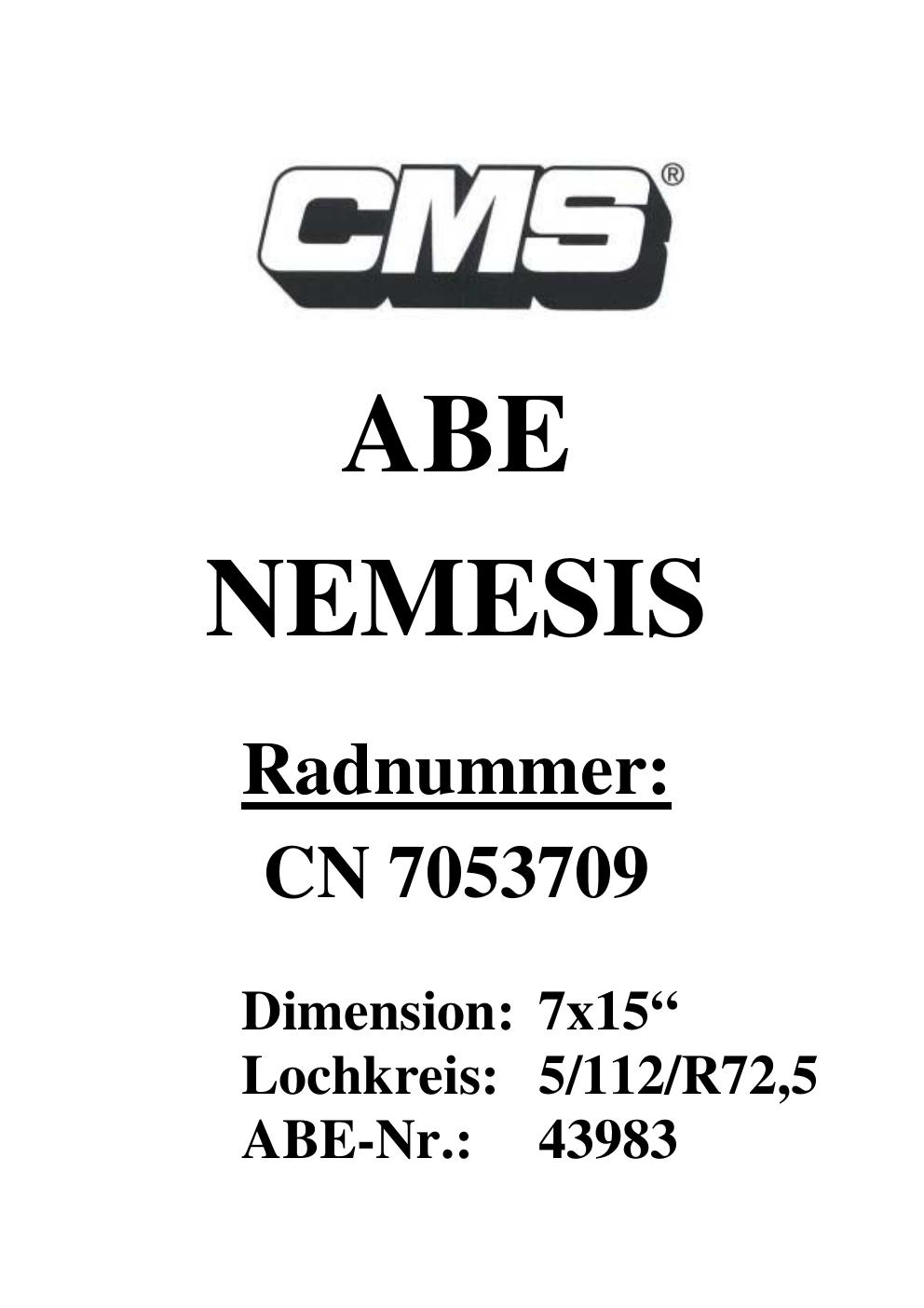 Dieses Gutachten (ABE) bezieht sich auf die Alufelge CMS UNKNOWN in der Ausführung ET 0, Mittenloch 0 mm (KBA 43983). Im PDF findest du typischerweise zulässige Reifengrößen, Auflagen/Anbauhinweise und – je nach Dokument – Hinweise zur Eintragung.
