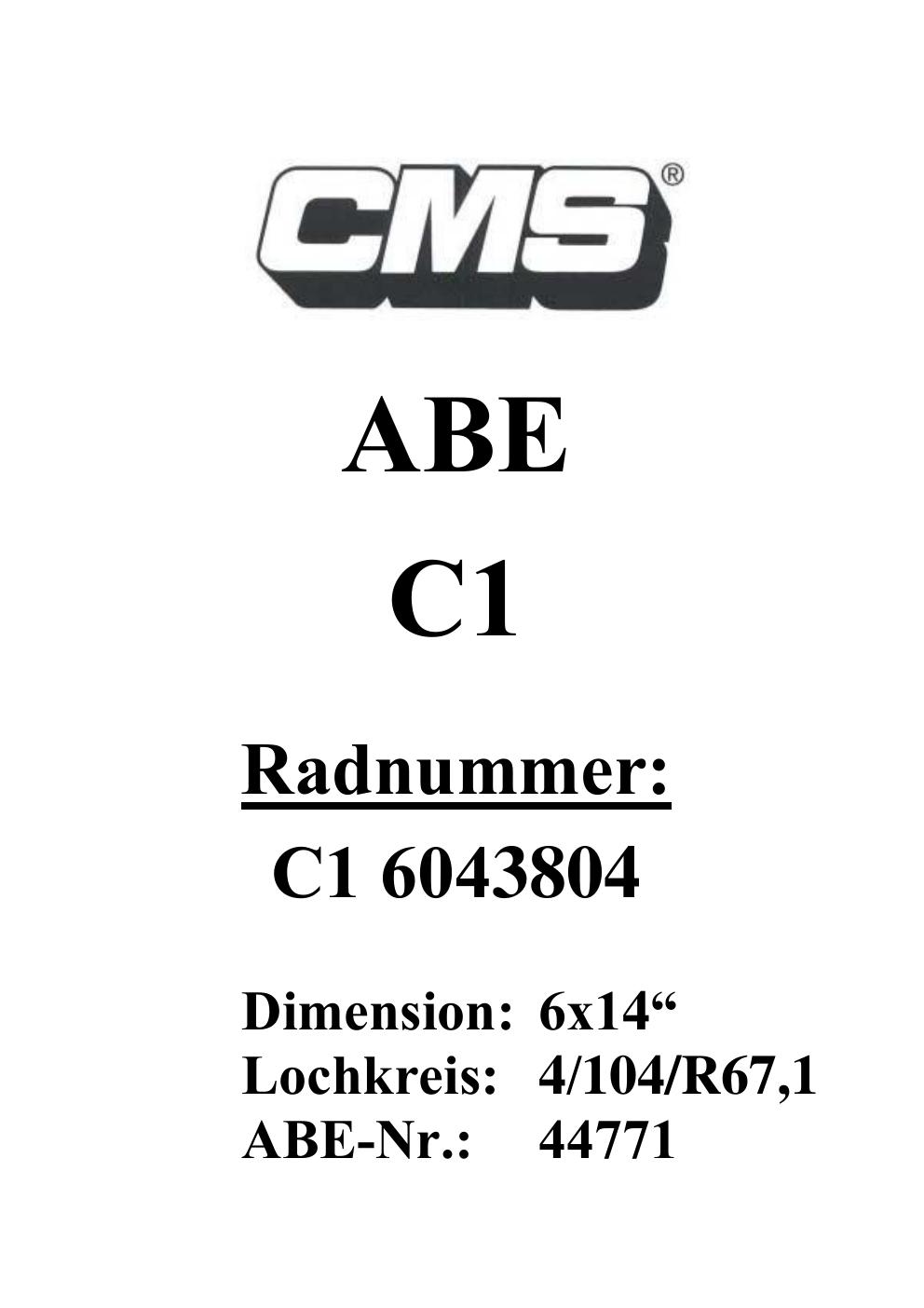 Dieses Gutachten (ABE) bezieht sich auf die Alufelge CMS UNKNOWN in der Ausführung ET 0, Mittenloch 0 mm (KBA 44771). Im PDF findest du typischerweise zulässige Reifengrößen, Auflagen/Anbauhinweise und – je nach Dokument – Hinweise zur Eintragung.